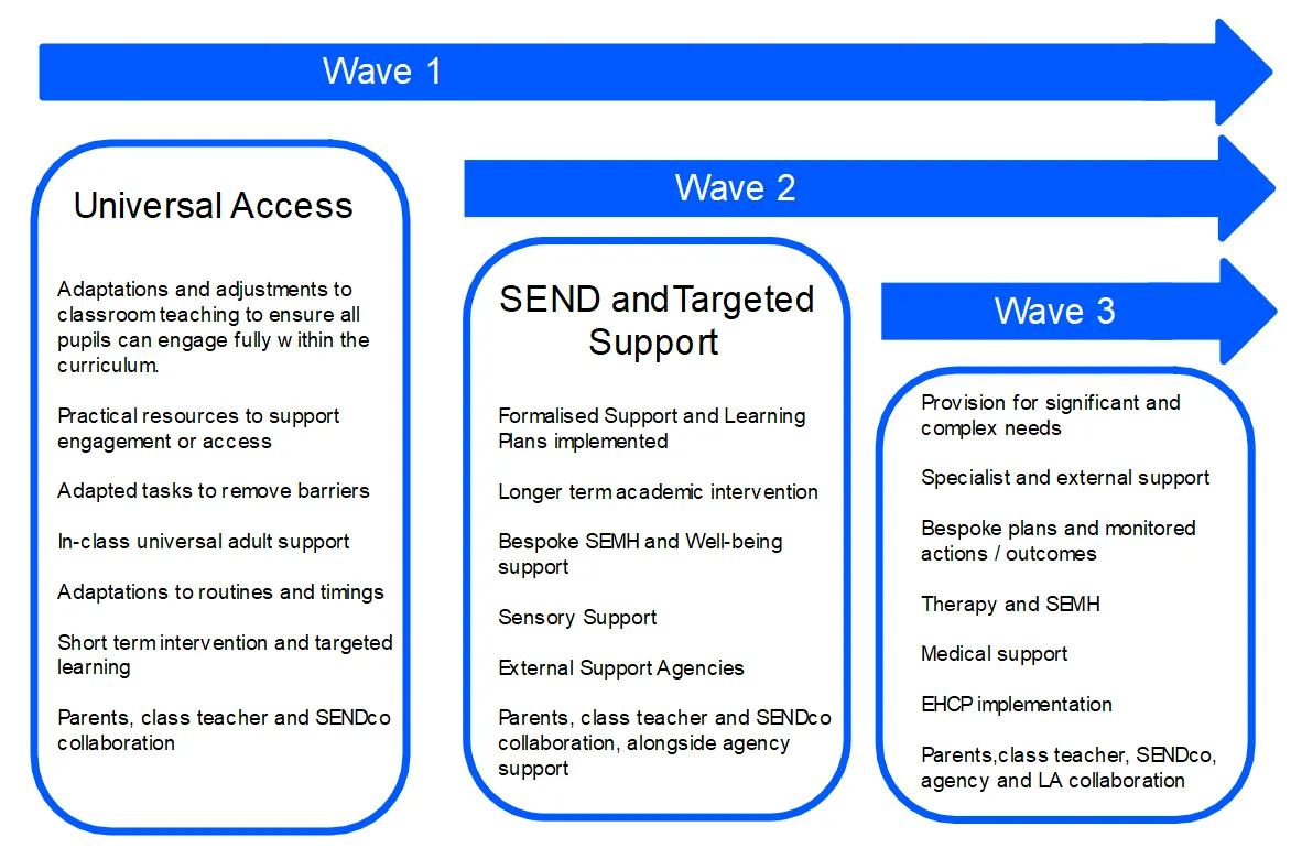 The materials below provide a greater detail of how we support pupils across school and across a range of needs and varying levels of support.